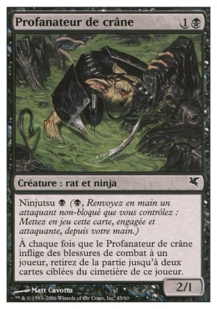 | Rules | Ninjutsu (, Return an unblocked attacker you control to hand: Put this card onto the battlefield from your hand tapped and attacking.) Whenever Skullsnatcher deals combat damage to a player, exile up to two target cards from that player's graveyard. |