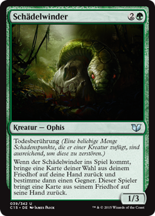 | Rules | Deathtouch (Any amount of damage this deals to a creature is enough to destroy it.) When Skullwinder enters the battlefield, return target card from your graveyard to your hand, then choose an opponent. That player returns a card from their graveyard to their hand. |