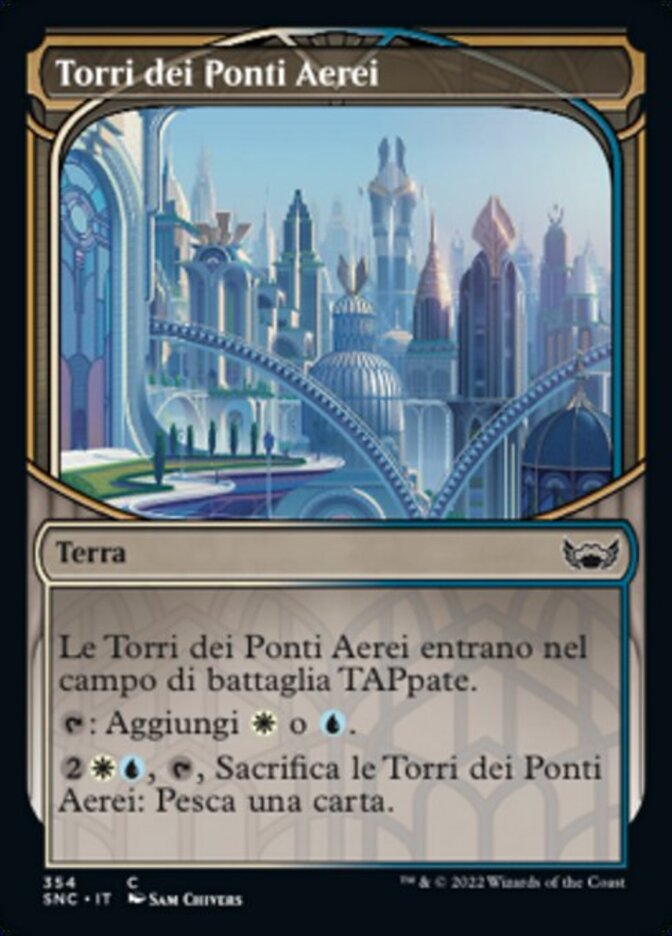 | Rules | Skybridge Towers enters the battlefield tapped. : Add or . , , Sacrifice Skybridge Towers: Draw a card. |