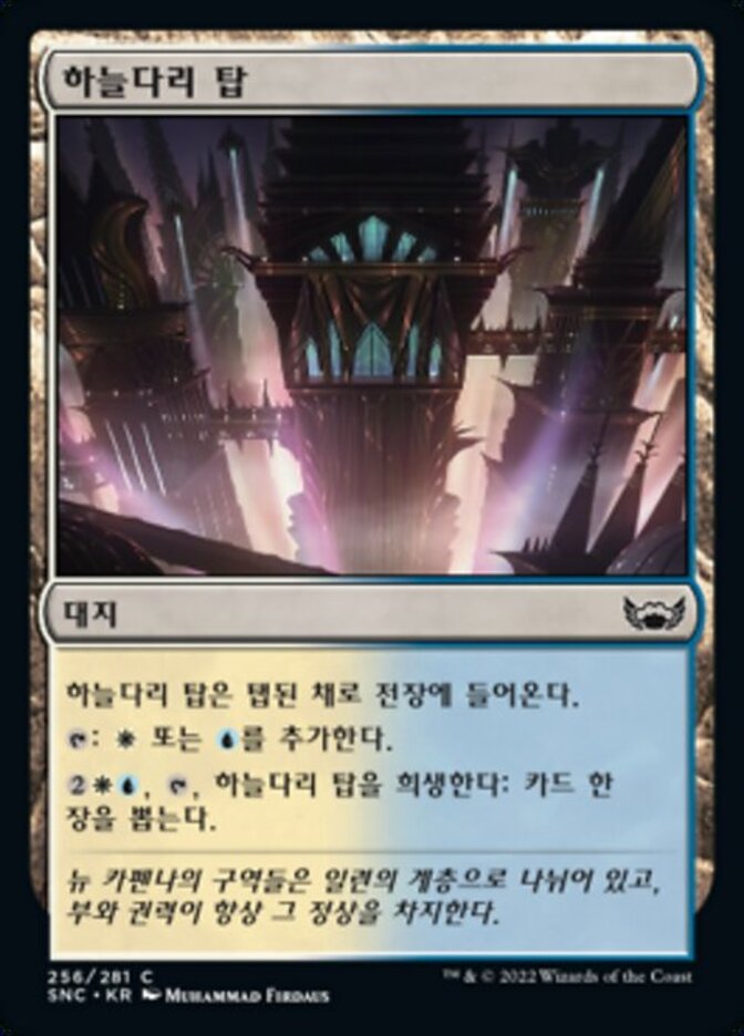 | Rules | Skybridge Towers enters the battlefield tapped. : Add or . , , Sacrifice Skybridge Towers: Draw a card. |