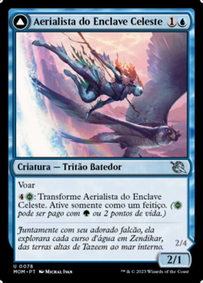 | Rules | Flying : Transform Skyclave Aerialist. Activate only as a sorcery. ( can be paid with either or 2 life.) // Flying When this creature transforms into Skyclave Invader, look at the top card of your library. If it's a land card, you may put it onto the battlefield. If you don't put the card onto the battlefield, put it into your hand. |