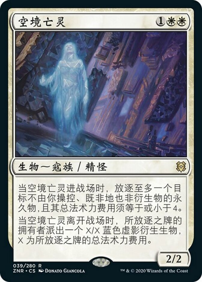 | Rules | When Skyclave Apparition enters the battlefield, exile up to one target nonland, nontoken permanent you don't control with mana value 4 or less. When Skyclave Apparition leaves the battlefield, the exiled card's owner creates an X/X blue Illusion creature token, where X is the mana value of the exiled card. |