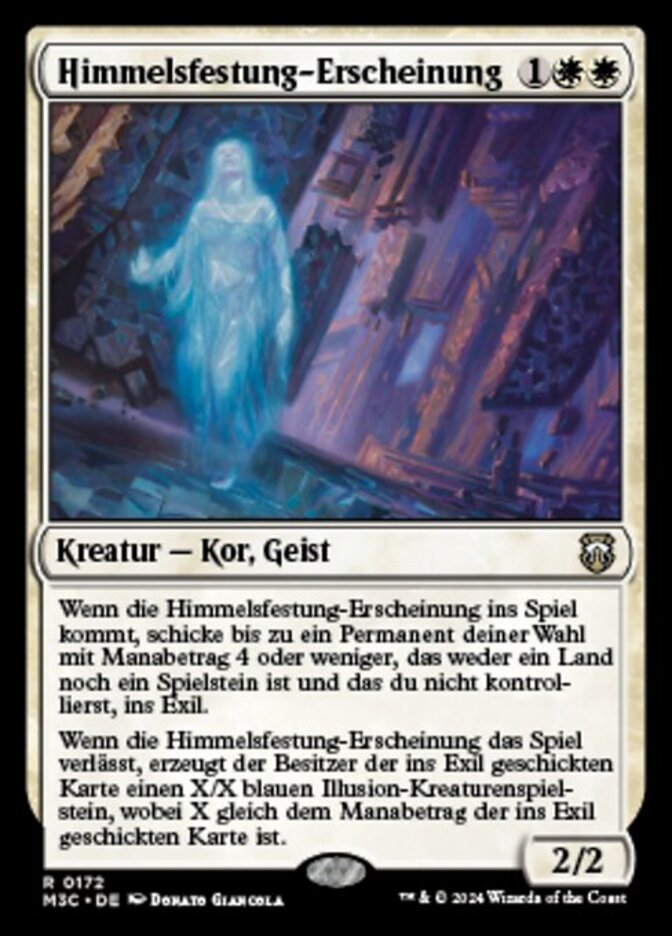 | Rules | When Skyclave Apparition enters the battlefield, exile up to one target nonland, nontoken permanent you don't control with mana value 4 or less. When Skyclave Apparition leaves the battlefield, the exiled card's owner creates an X/X blue Illusion creature token, where X is the mana value of the exiled card. |