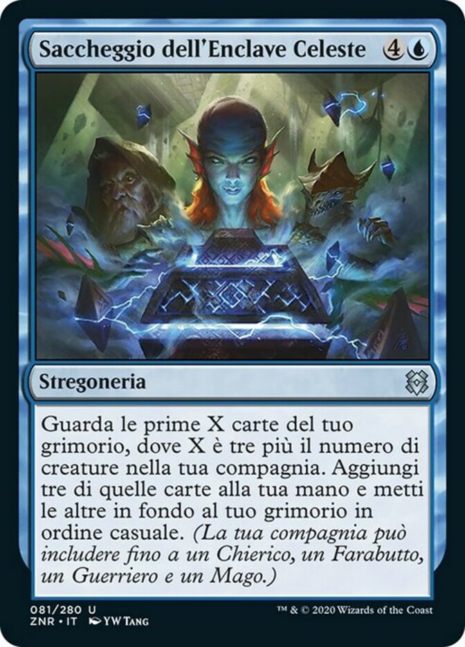 | Rules | Look at the top X cards of your library, where X is three plus the number of creatures in your party. Put three of those cards into your hand and the rest on the bottom of your library in a random order. (Your party consists of up to one each of Cleric, Rogue, Warrior, and Wizard.) |