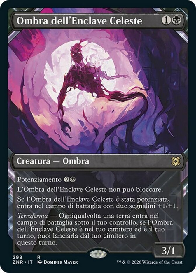 | Rules | Kicker Skyclave Shade can't block. If Skyclave Shade was kicked, it enters the battlefield with two +1/+1 counters on it. Landfall — Whenever a land enters the battlefield under your control, if Skyclave Shade is in your graveyard and it's your turn, you may cast it from your graveyard this turn. |