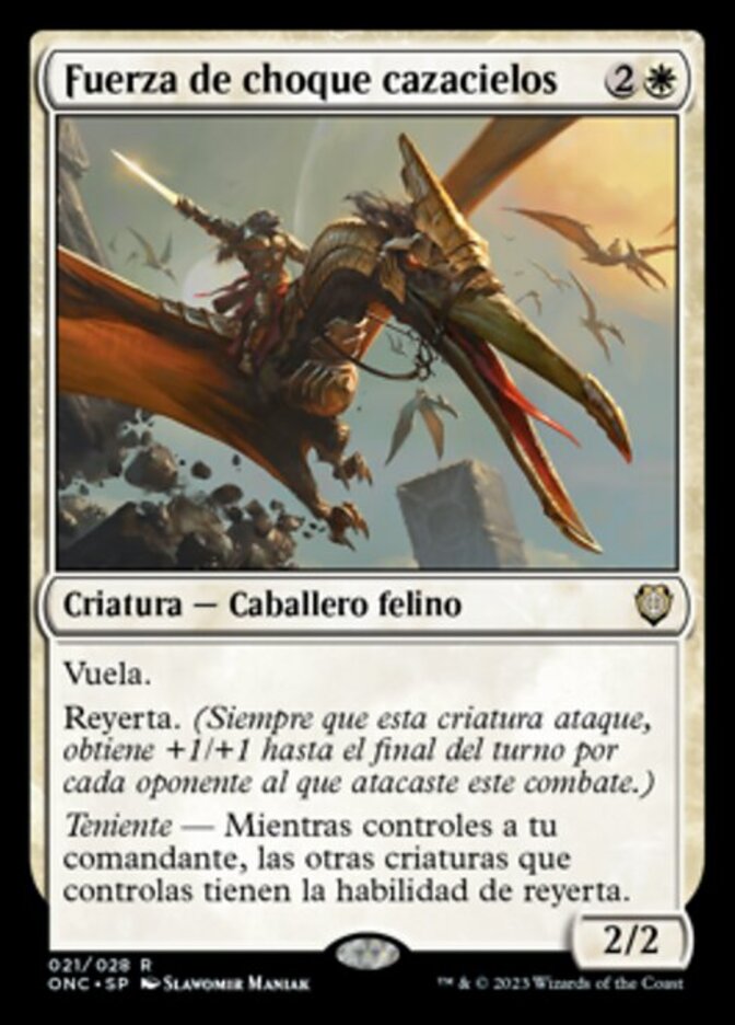 | Rules | Flying Melee (Whenever this creature attacks, it gets +1/+1 until end of turn for each opponent you attacked this combat.) Lieutenant — As long as you control your commander, other creatures you control have melee. |