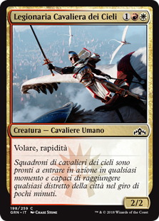 | Flavor | "I do not know which gives me more pride: the legions of soldiers marching in thunderous lockstep, or the cry of the skyknights riding their rocs like jagged lightning overhead."-Razia |
