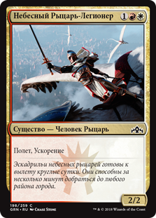 | Flavor | "I do not know which gives me more pride: the legions of soldiers marching in thunderous lockstep, or the cry of the skyknights riding their rocs like jagged lightning overhead."-Razia |