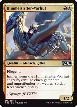 | Rules | Flying Whenever Skyknight Vanguard attacks, create a 1/1 white Soldier creature token that's tapped and attacking. |