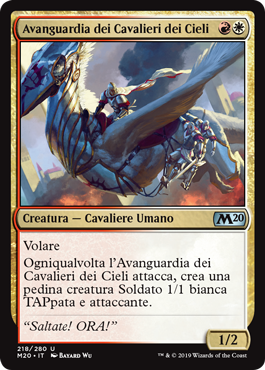 | Rules | Flying Whenever Skyknight Vanguard attacks, create a 1/1 white Soldier creature token that's tapped and attacking. |