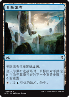 | Rules | Skyline Cascade enters the battlefield tapped. When Skyline Cascade enters the battlefield, target creature an opponent controls doesn't untap during its controller's next untap step. : Add . |