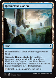 | Rules | Skyline Cascade enters the battlefield tapped. When Skyline Cascade enters the battlefield, target creature an opponent controls doesn't untap during its controller's next untap step. : Add . |