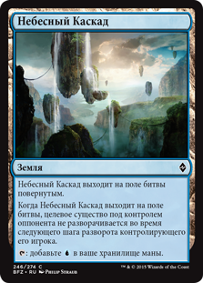 | Rules | Skyline Cascade enters the battlefield tapped. When Skyline Cascade enters the battlefield, target creature an opponent controls doesn't untap during its controller's next untap step. : Add . |