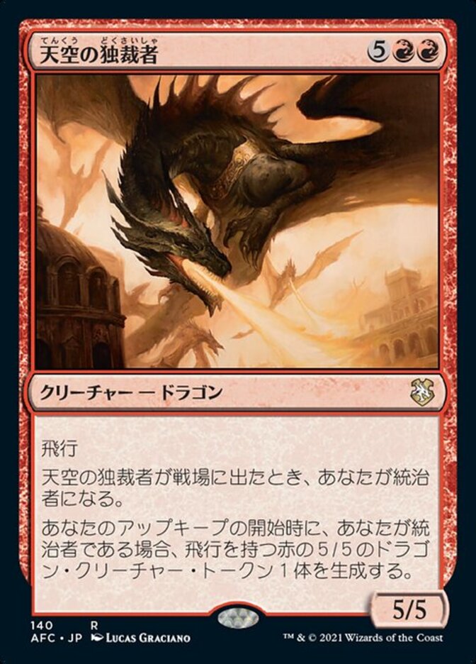 | Rules | Flying When Skyline Despot enters the battlefield, you become the monarch. At the beginning of your upkeep, if you're the monarch, create a 5/5 red Dragon creature token with flying. |