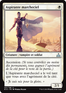 | Rules | Ascend (If you control ten or more permanents, you get the city's blessing for the rest of the game.) Skymarcher Aspirant has flying as long as you have the city's blessing. |