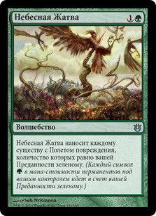 | Rules | Skyreaping deals damage to each creature with flying equal to your devotion to green. (Each in the mana costs of permanents you control counts toward your devotion to green.) |