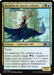 | Rules | Flying At the beginning of combat on your turn, you may pay . When you do, put a +1/+1 counter on another target creature you control, and that creature gains flying until end of turn. |