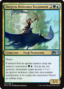 | Rules | Flying At the beginning of combat on your turn, you may pay . When you do, put a +1/+1 counter on another target creature you control, and that creature gains flying until end of turn. |