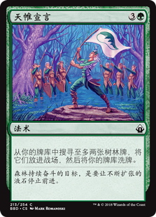 | Rules | Search your library for up to two Forest cards, put them onto the battlefield, then shuffle. |