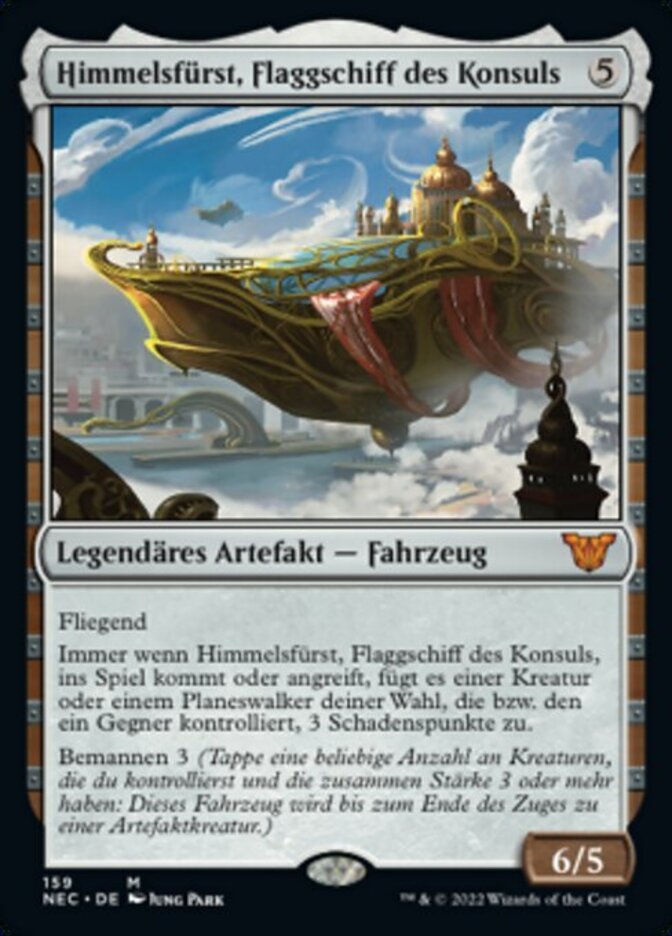 | Rules | Flying Whenever Skysovereign, Consul Flagship enters the battlefield or attacks, it deals 3 damage to target creature or planeswalker an opponent controls. Crew 3 (Tap any number of creatures you control with total power 3 or more: This Vehicle becomes an artifact creature until end of turn.) |