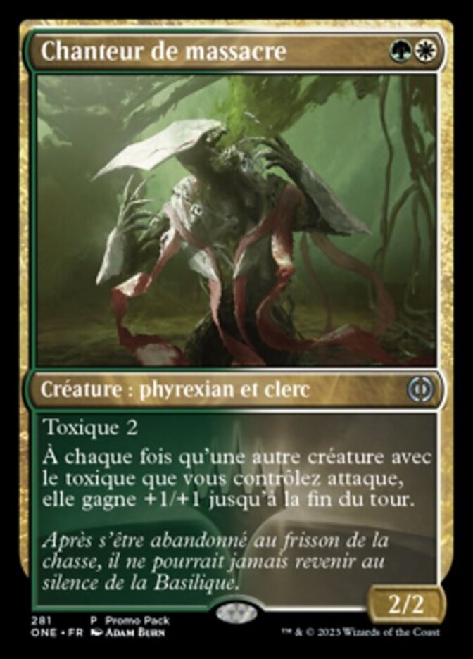 | Rules | Toxic 2 (Players dealt combat damage by this creature also get two poison counters.) Whenever another creature you control with toxic attacks, it gets +1/+1 until end of turn. |