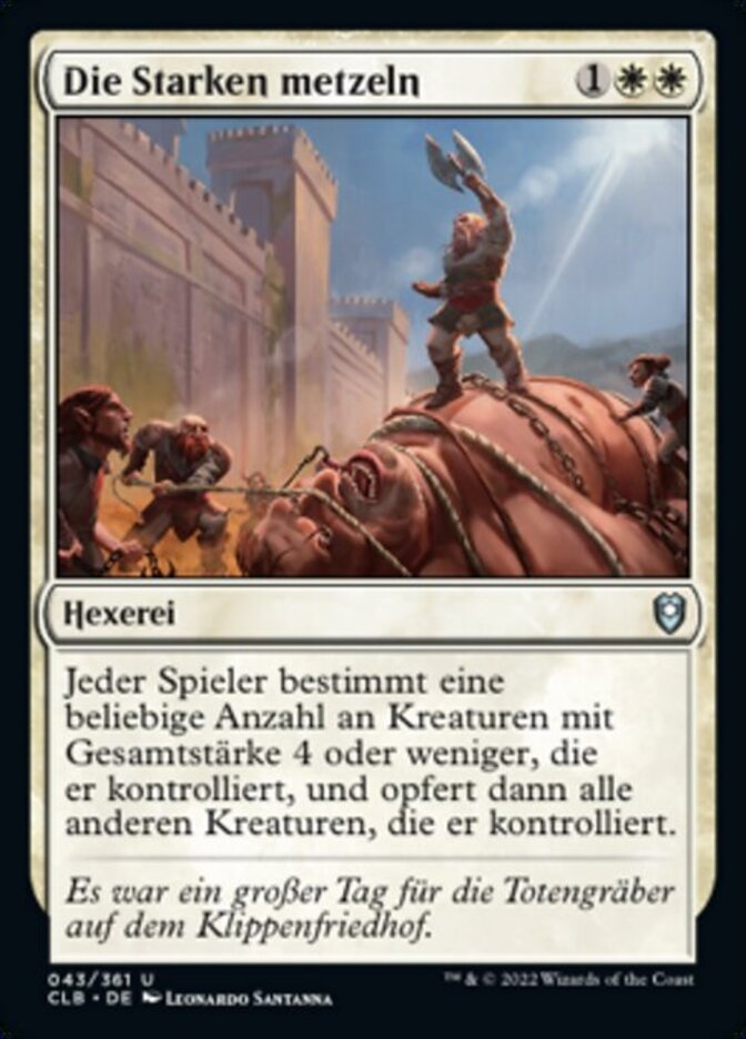 | Rules | Each player chooses any number of creatures they control with total power 4 or less, then sacrifices all other creatures they control. |