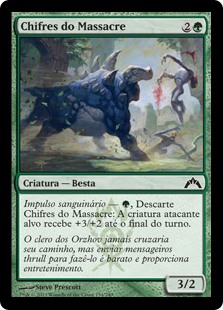 | Rules | Bloodrush — , Discard Slaughterhorn: Target attacking creature gets +3/+2 until end of turn. |