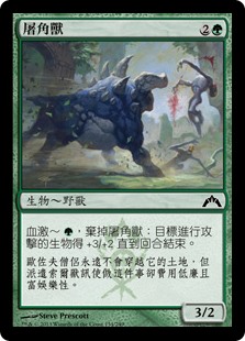 | Rules | Bloodrush — , Discard Slaughterhorn: Target attacking creature gets +3/+2 until end of turn. |