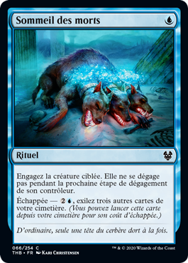 | Rules | Tap target creature. It doesn't untap during its controller's next untap step. Escape—, Exile three other cards from your graveyard. (You may cast this card from your graveyard for its escape cost.) |