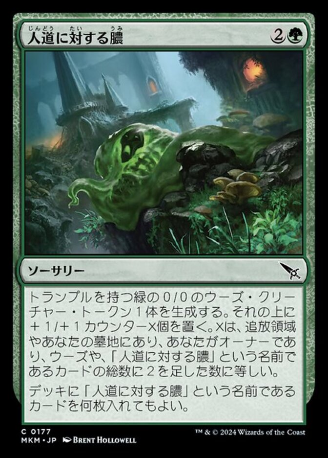 | Rules | Create a 0/0 green Ooze creature token with trample. Put X +1/+1 counters on it, where X is two plus the total number of cards you own in exile and in your graveyard that are Oozes or are named Slime Against Humanity. A deck can have any number of cards named Slime Against Humanity. |