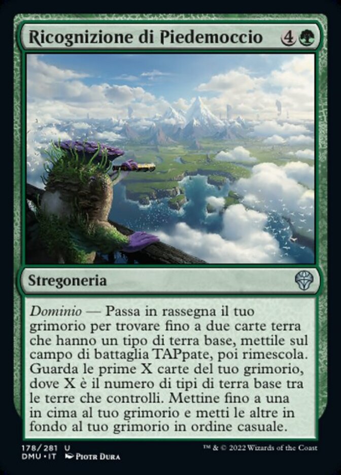 | Rules | Domain — Search your library for up to two land cards that each have a basic land type, put them into the battlefield tapped, then shuffle. Look at the top X cards of your library, where X is the number of basic land types among lands you control. Put up to one of them on top of your library and the rest on the bottom of your library in a random order. |