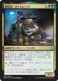 | Rules | Whenever a Saproling you control dies, Slimefoot, the Stowaway deals 1 damage to each opponent and you gain 1 life. : Create a 1/1 green Saproling creature token. |