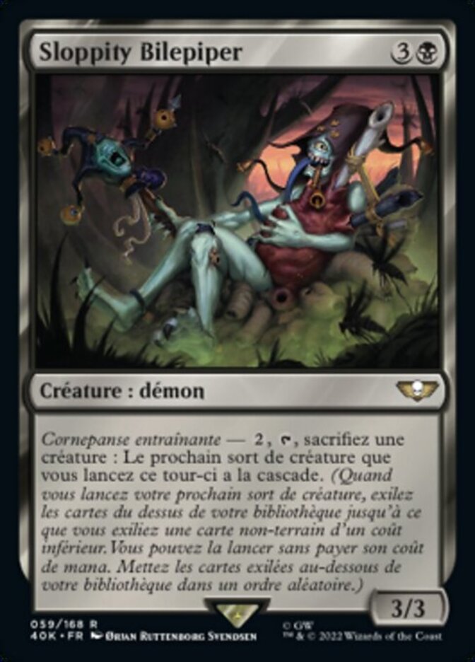 | Rules | Jolly Gutpipes — , , Sacrifice a creature: The next creature spell you cast this turn has cascade. (When you cast your next creature spell, exile cards from the top of your library until you exile a nonland card that costs less. You may cast it without paying its mana cost. Put the exiled cards on the bottom of your library in a random order.) |