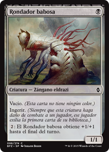 | Rules | Devoid (This card has no color.) Ingest (Whenever this creature deals combat damage to a player, that player exiles the top card of their library.) : Sludge Crawler gets +1/+1 until end of turn. |