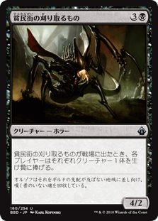 | Rules | When Slum Reaper enters the battlefield, each player sacrifices a creature. |