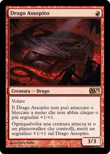 | Rules | Flying Slumbering Dragon can't attack or block unless it has five or more +1/+1 counters on it. Whenever a creature attacks you or a planeswalker you control, put a +1/+1 counter on Slumbering Dragon. |