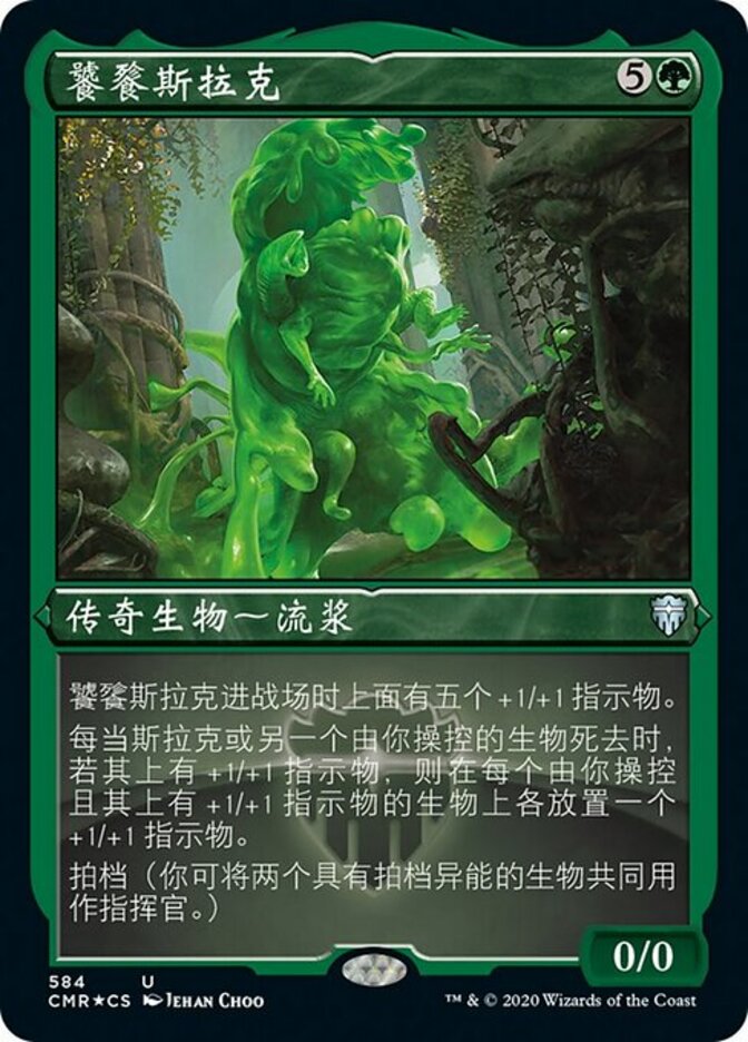 | Rules | Slurrk, All-Ingesting enters the battlefield with five +1/+1 counters on it. Whenever Slurrk or another creature you control dies, if it had a +1/+1 counter on it, put a +1/+1 counter on each creature you control that has a +1/+1 counter on it. Partner (You can have two commanders if both have partner.) |