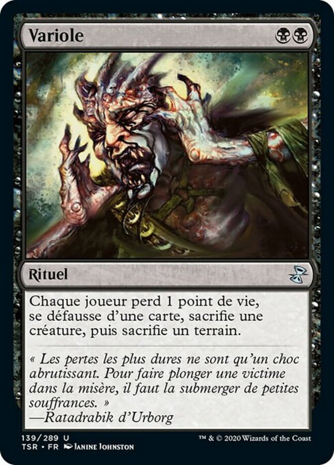 Rules Each player loses 1 life, discards a card, sacrifices a creature, then sacrifices a land.