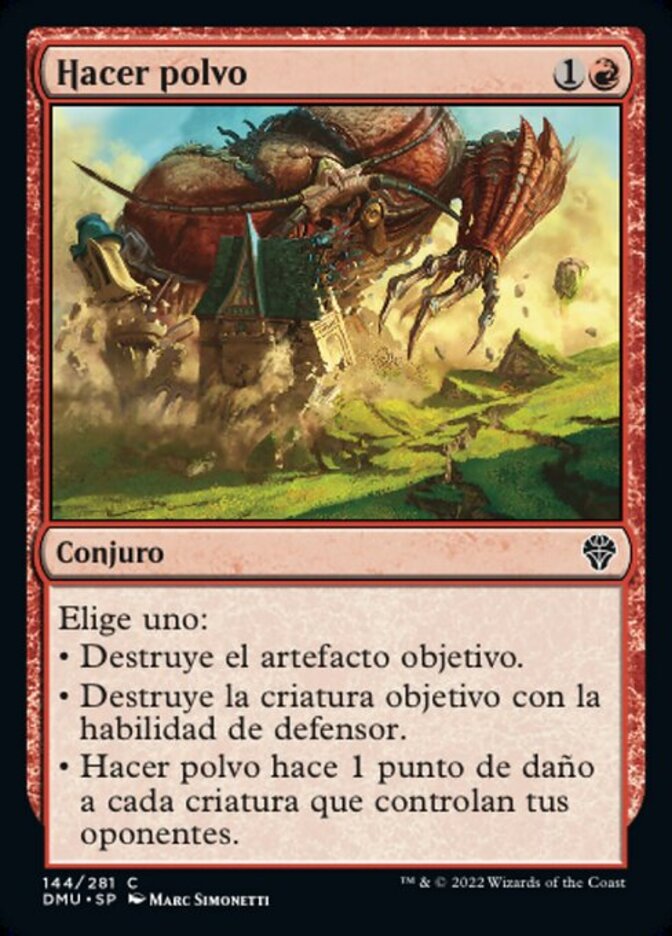 | Rules | Choose one — • Destroy target artifact. • Destroy target creature with defender. • Smash to Dust deals 1 damage to each creature your opponents control. |
