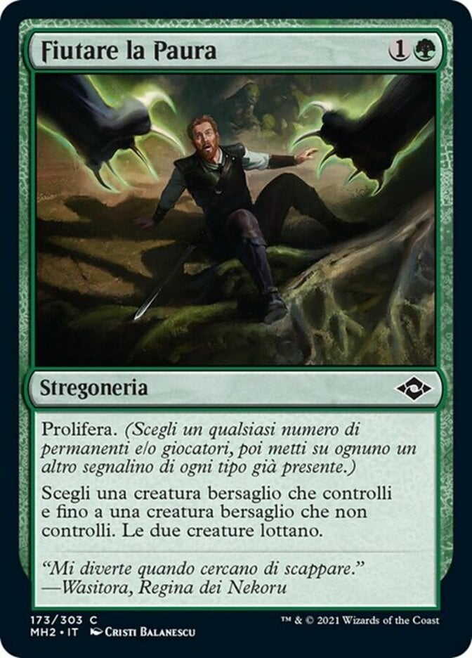 | Rules | Proliferate. (Choose any number of permanents and/or players, then give each another counter of each kind already there.) Target creature you control fights up to one target creature you don't control. |