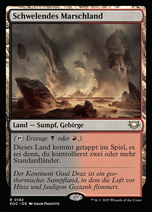 | Rules | (: Add or .) Smoldering Marsh enters the battlefield tapped unless you control two or more basic lands. |