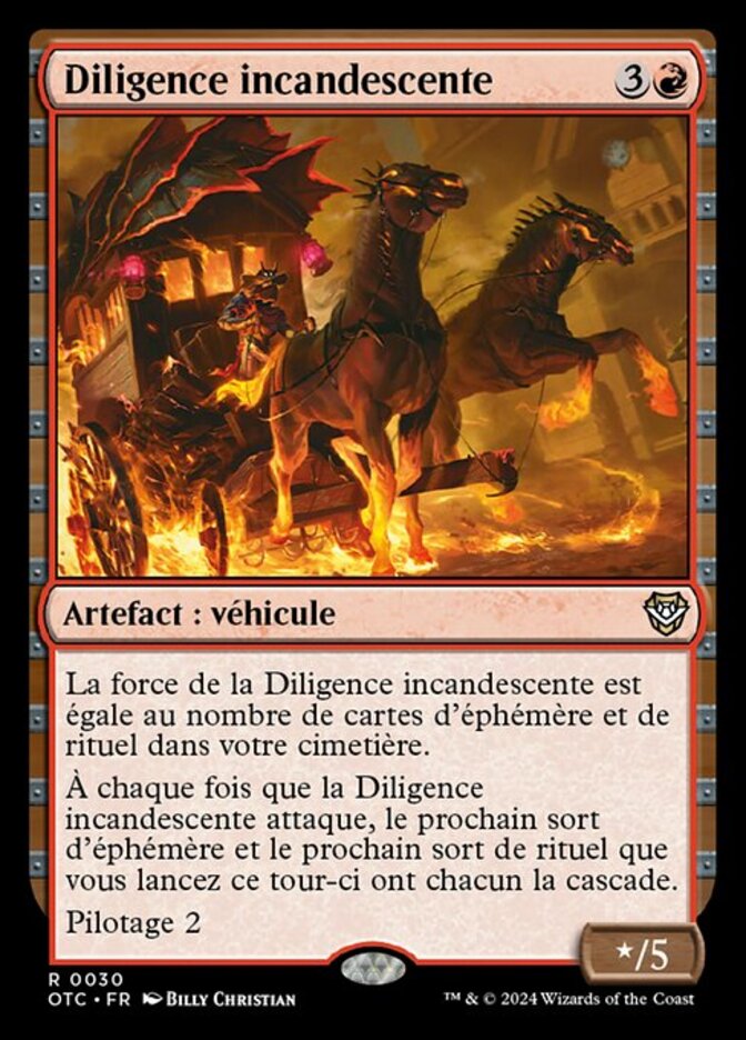 | Rules | Smoldering Stagecoach's power is equal to the number of instant and sorcery cards in your graveyard. Whenever Smoldering Stagecoach attacks, the next instant spell and the next sorcery spell you cast this turn each have cascade. Crew 2 |