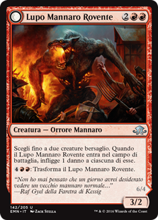 Languages Smoldering Werewolf // Erupting Dreadwolf 悶燃狼人 // 縱焰恐狼 Schwelender Werwolf // Aufberstender Schreckenswolf Loup-garou fumant // Loup de l'effroi en éruption Lupo Mannaro Rovente // Terrore Mannaro in Escandescenza くすぶる狼男 // 噴出する戦慄狼 그을린 늑대인간 // 폭발하는 공포늑대 Lobisomem Ardente // Lobo Pavoroso em Erupção Тлеющий Вервольф // Кошмарный Огневолк 闷燃狼人 // 纵焰恐狼 Licántropo incandescente // Pavor licano en erupción