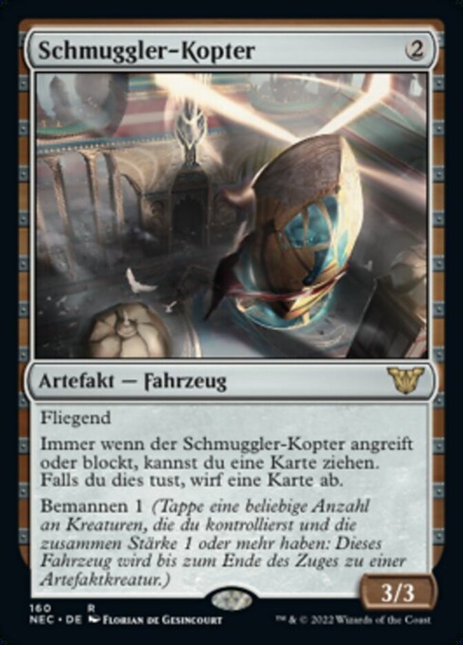 | Rules | Flying Whenever Smuggler's Copter attacks or blocks, you may draw a card. If you do, discard a card. Crew 1 (Tap any number of creatures you control with total power 1 or more: This Vehicle becomes an artifact creature until end of turn.) |