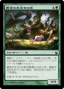 | Rules | Tribute 3 (As this creature enters the battlefield, an opponent of your choice may put three +1/+1 counters on it.) When Snake of the Golden Grove enters the battlefield, if tribute wasn't paid, you gain 4 life. |