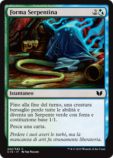 | Rules | Until end of turn, target creature loses all abilities and becomes a green Snake with base power and toughness 1/1. Draw a card. |