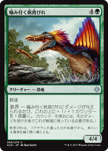 | Flavor | Lurking beneath the murky waters of Ixalan's rivers, sailbacks can rip a meal off the shore in the blink of an eye. |