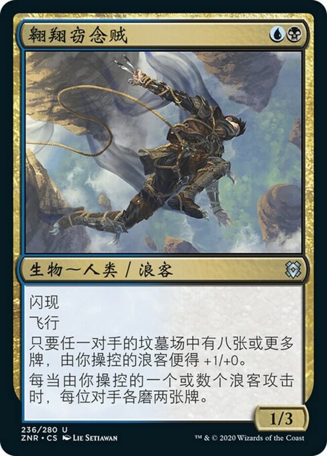 | Rules | Flash Flying As long as an opponent has eight or more cards in their graveyard, Rogues you control get +1/+0. Whenever one or more Rogues you control attack, each opponent mills two cards. |