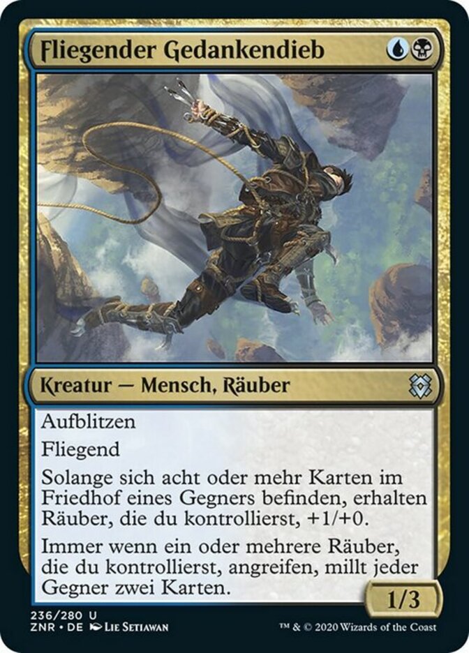 | Rules | Flash Flying As long as an opponent has eight or more cards in their graveyard, Rogues you control get +1/+0. Whenever one or more Rogues you control attack, each opponent mills two cards. |