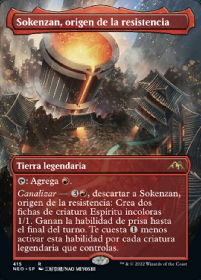 | Rules | : Add . Channel — , Discard Sokenzan, Crucible of Defiance: Create two 1/1 colorless Spirit creature tokens. They gain haste until end of turn. This ability costs less to activate for each legendary creature you control. |